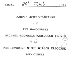 They formed the trustees of the trust between the Community Centre and Martin John Wilbraham plus the Honourable Michael Llowarch Warburton Flower for the lease of the land for 21 years from the above date.