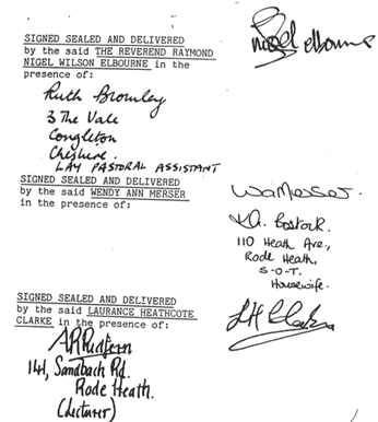 - Reverend Raymond Nigel Wilson Elbourne, (reverend of Odd Rode Parish).